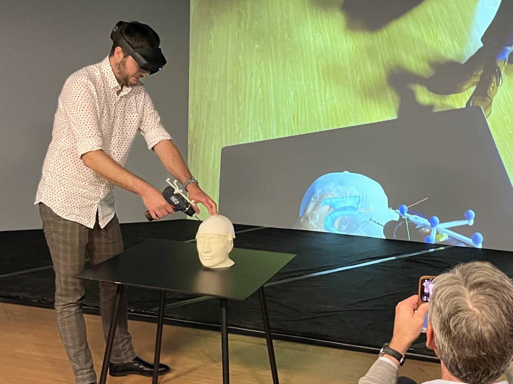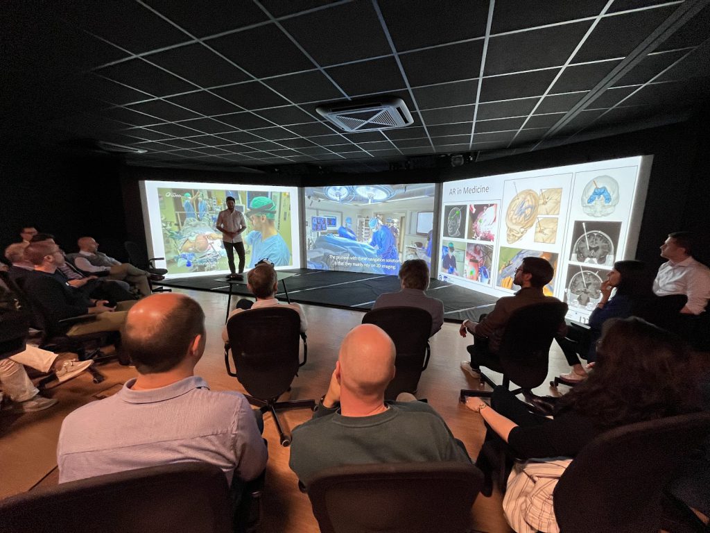 A full immersive experience of Augmented Reality for neurosurgical planning and real-time intervention, demonstrated by Taylor on the FARI immersive CAVE during the Agoria HealthTech roundtable event June 17th , 2024.